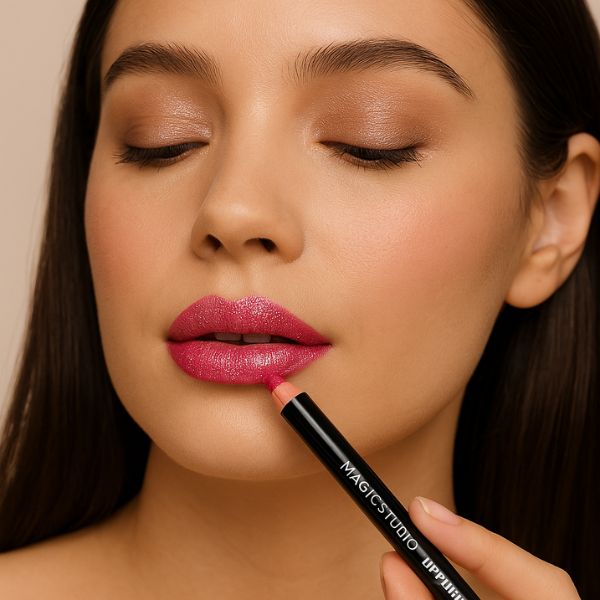 3- Desenhe o contorno: Trace o contorno dos seus lábios, começando do centro em direção às pontas.